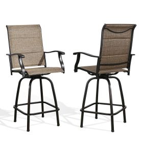 Outdoor Swivel Bar Stools Patio Sling Bar Chairs Padded with Quick Dry Foam, Set of 2