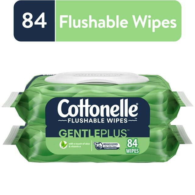 Cottonelle GentlePlus Flushable Wipes, 2 Flip-Top Packs, 42 Wipes per Pack (84 Total) Cottonelle GentlePlus Flushable Wipes, 2 Flip-Top Packs, 42 Wipes per Pack (84 Total) Cottonelle GentlePlus Flushable Wipes, 2 Flip-Top Packs, 42 Wipes per Pack (84 Total)