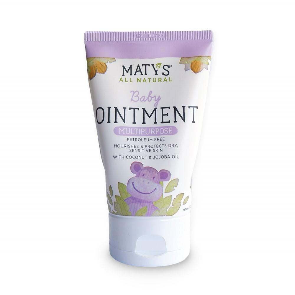 Maty's All Natural Baby Ointment is petroleum-free and contains healthy oils that closely resemble the oils of babies' skin. It nourishes and protects your baby by creating a moisture barrier to help prevent diaper rash. It promotes healing without messy build-up. Safe for cloth diapers. There are no parabens, phthalates, fragrances, hydrogenated oils, gluten, artificial colors, or chemicals. Maty's multi-purpose ointment can be used for cradle cap, eczema, chapped lips, and more. Maty's makes natural and organic whole food health alternatives for the entire family. Maty's creates drug-free alternatives for babies, children, and adults. All of Maty's products are either all-natural or organic and are made with ingredients that you can pronounce. You can give them to your family and be confident that you know what is in them. Maty's product line includes organic and all-natural cough syrups, all-natural vapor rubs, all-natural baby chest rubs, baby ointment, and all-natural acid indigestion relief remedies.