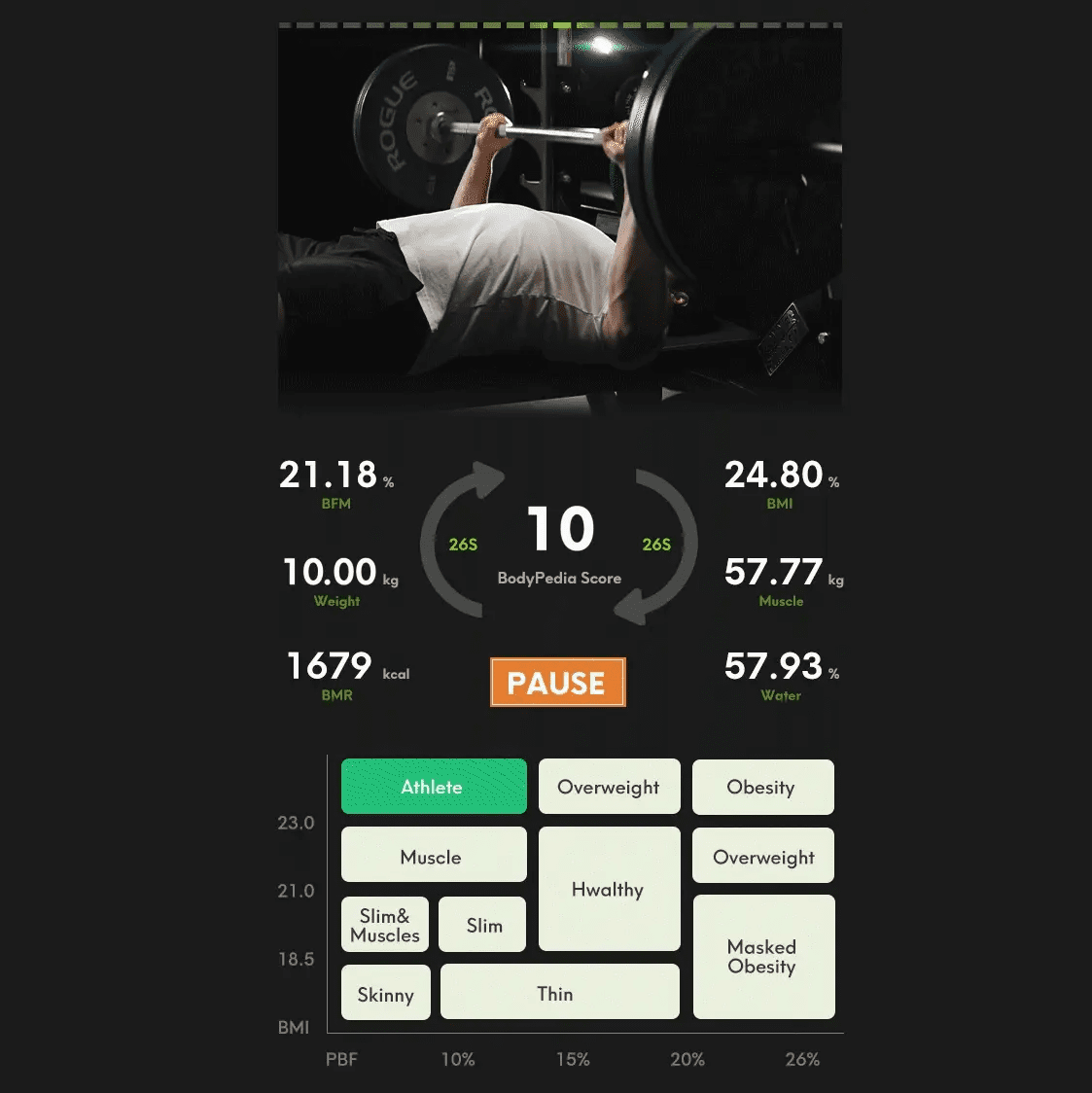 Measures each of the body' s five cylinders (left arm, right arm, torso, left leg, and right lea) to deliver accurate and detailed results.